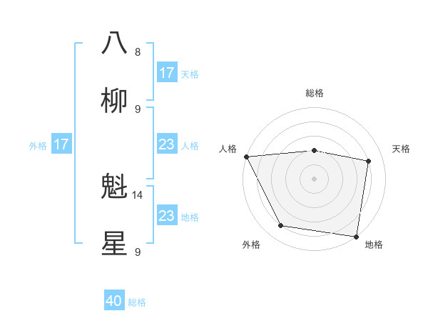 八柳 魁星さんの総格は40画の2点!