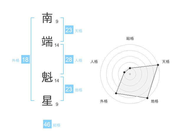 南端 魁星さんの総格は46画の1点!