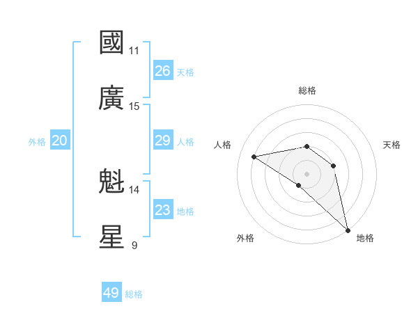國廣 魁星さんを姓名の画数から五運を鑑定