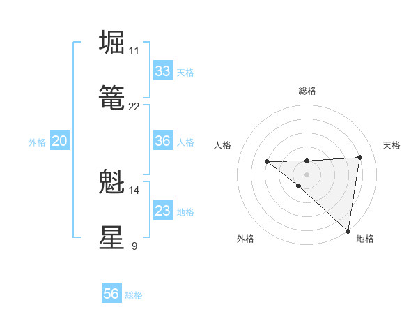 堀篭 魁星さんの総格は56画の1点!