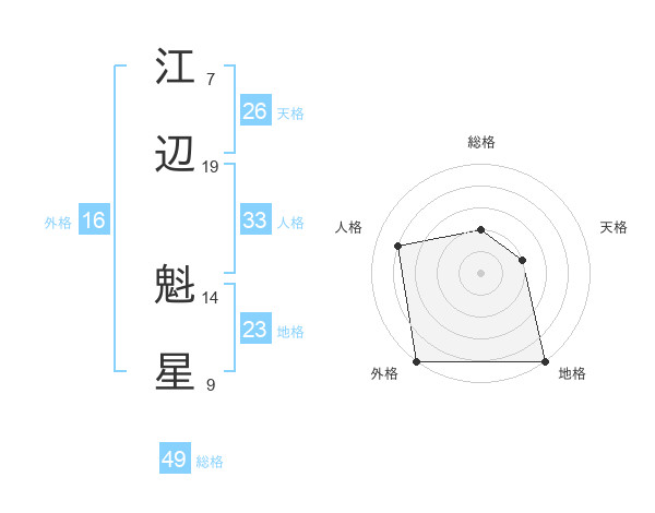 江辺 魁星さんの総格は49画の2点!