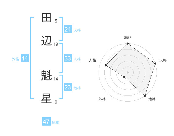田辺 魁星さんを姓名の画数から五運を鑑定