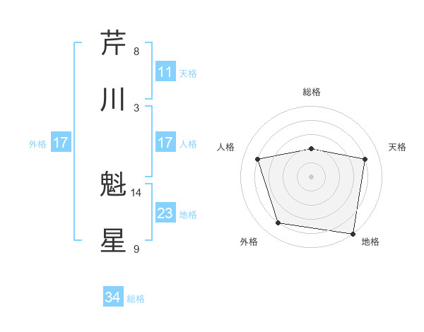 芹川 魁星さんの総格は34画の2点!