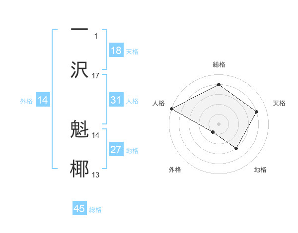 一沢 魁椰さんの総格は45画の4点!