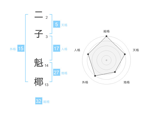 二子 魁椰さんの総格は32画の5点!