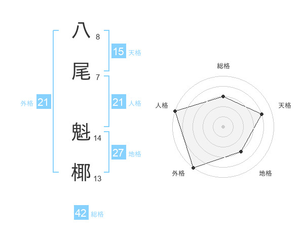 八尾 魁椰さんの外格は21画の5点!