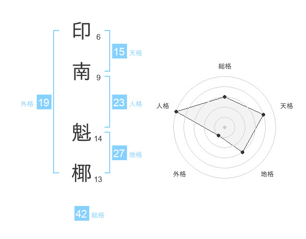 印南 魁椰さんを姓名の画数から五運を鑑定
