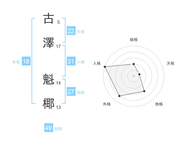古澤 魁椰さんの総格は49画の2点!