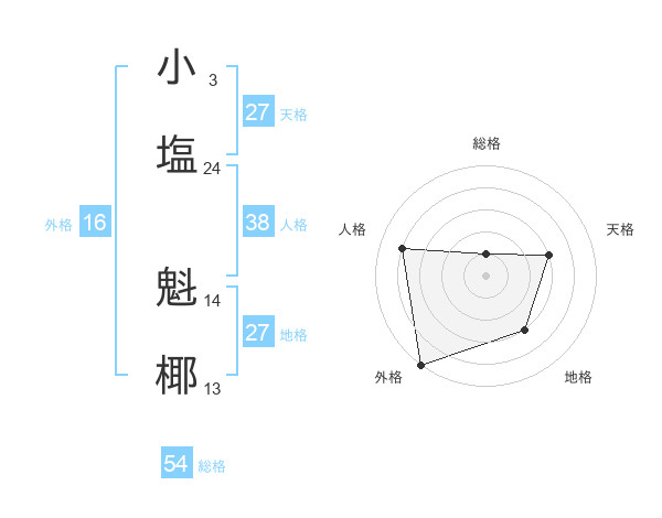 小塩 魁椰さんを姓名の画数から五運を鑑定