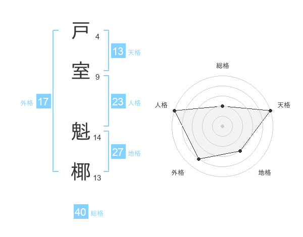 戸室 魁椰さんを姓名の画数から五運を鑑定