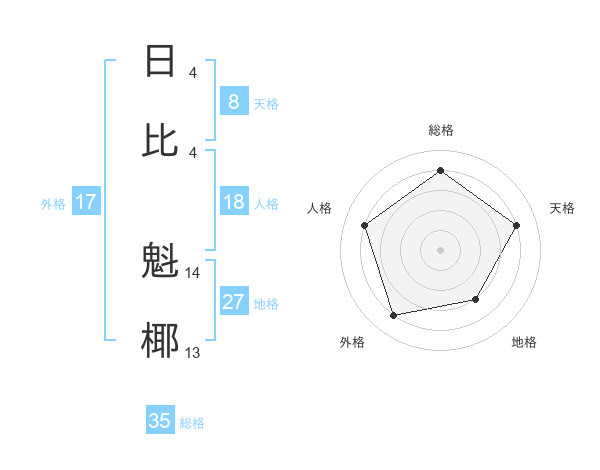 日比 魁椰さんを姓名の画数から五運を鑑定