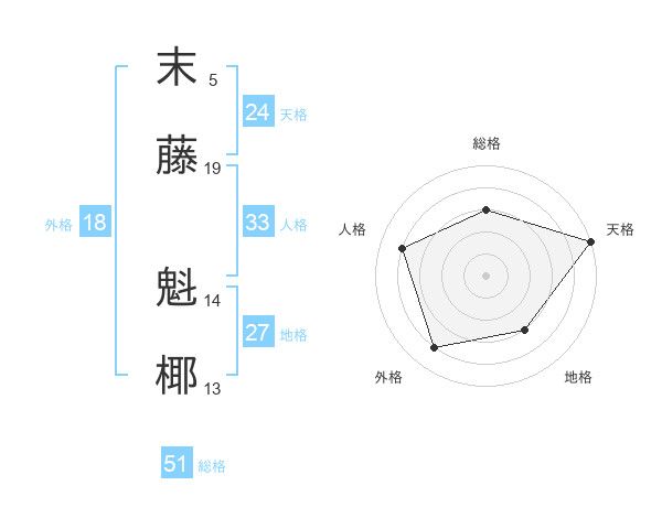末藤 魁椰さんを姓名の画数から五運を鑑定