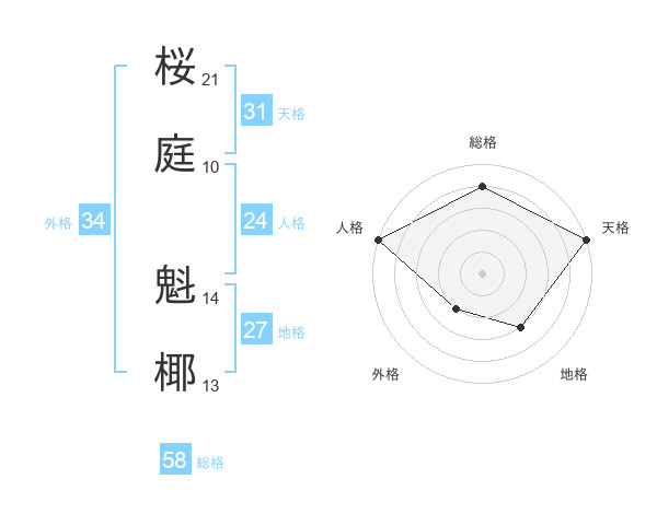 桜庭 魁椰さんを姓名の画数から五運を鑑定