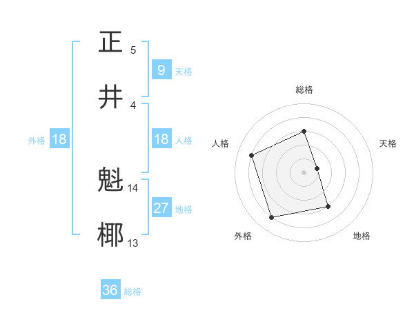 正井 魁椰さんを姓名の画数から五運を鑑定