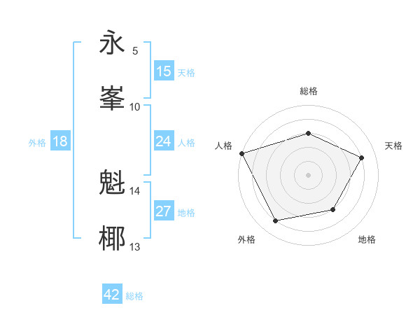 永峯 魁椰さんの総格は42画の3点!