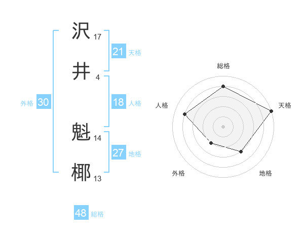 沢井 魁椰さんの総格は48画の4点!