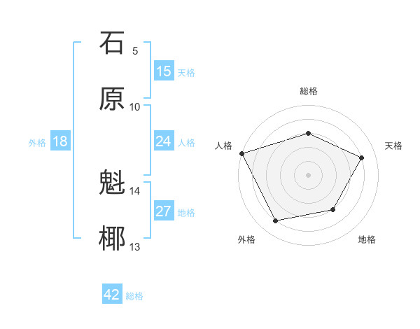 石原 魁椰さんを姓名の画数から五運を鑑定