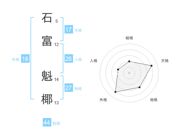 石富 魁椰さんを姓名の画数から五運を鑑定