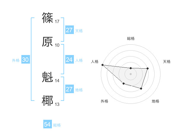 篠原 魁椰さんの総格は54画の1点!