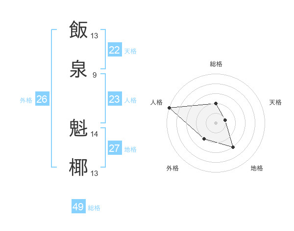 飯泉 魁椰さんを姓名の画数から五運を鑑定