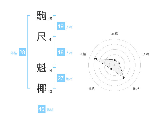 駒尺 魁椰さんを姓名の画数から五運を鑑定