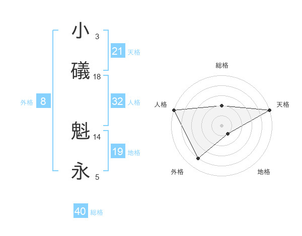 小礒 魁永さんを姓名の画数から五運を鑑定