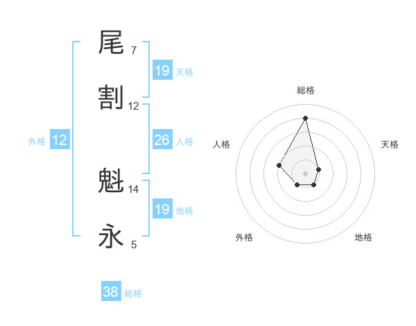 尾割 魁永さんを姓名の画数から五運を鑑定
