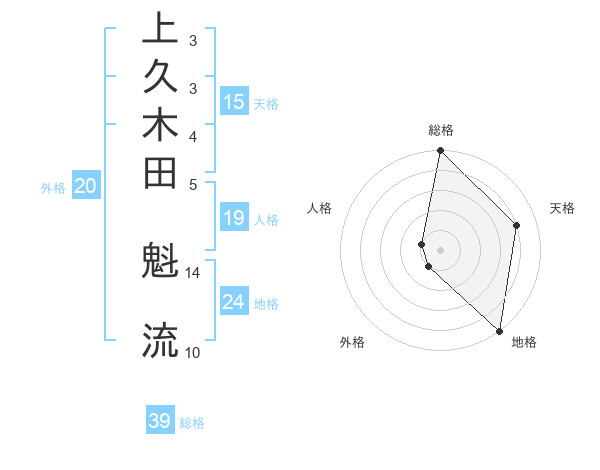 上久木田 魁流さんを姓名の画数から五運を鑑定