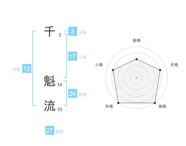 千 魁流さんの外格は13画の5点!