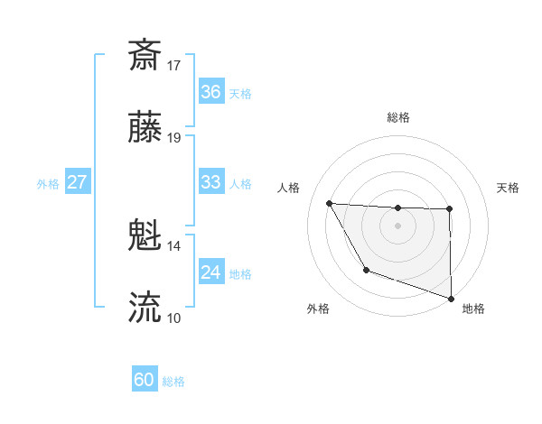 斎藤 魁流さんを姓名の画数から五運を鑑定