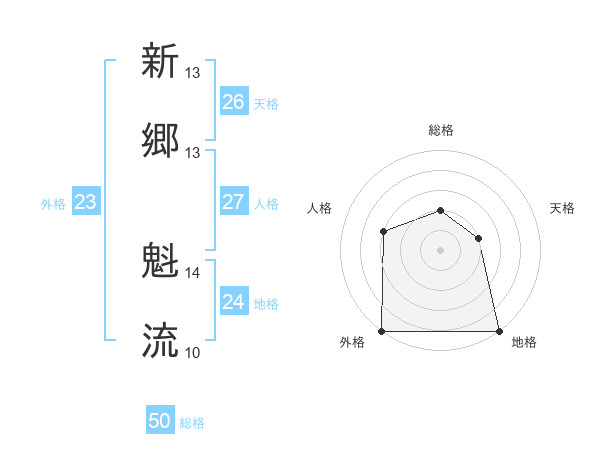 新郷 魁流さんを姓名の画数から五運を鑑定