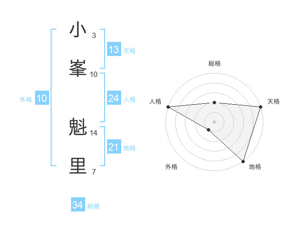 小峯 魁里さんを姓名の画数から五運を鑑定