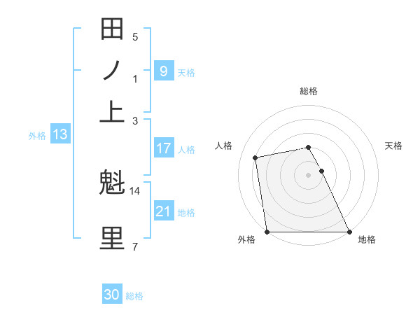 田ノ上 魁里さんを姓名の画数から五運を鑑定