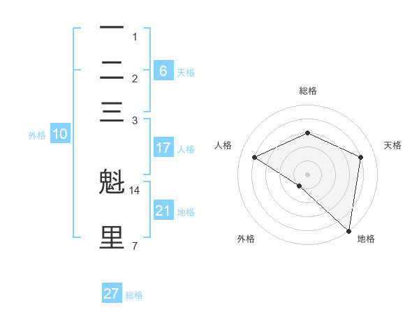 一二三 魁里さんを姓名の画数から五運を鑑定