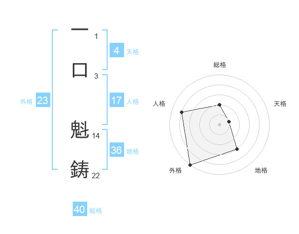 一口 魁鋳さんを姓名の画数から五運を鑑定