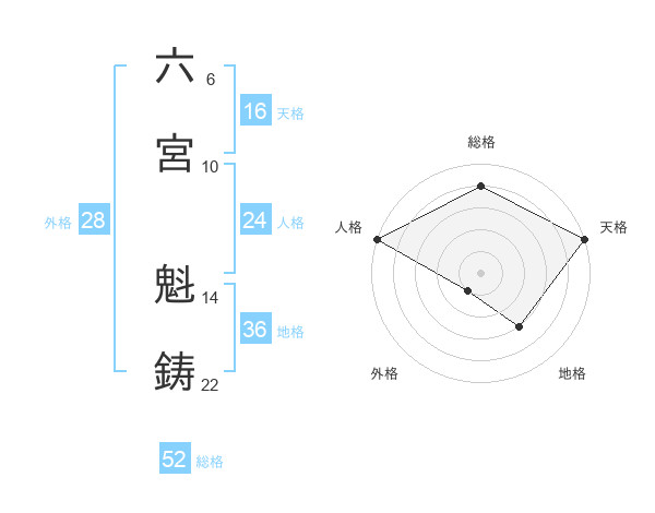 六宮 魁鋳さんの総格は52画の4点!