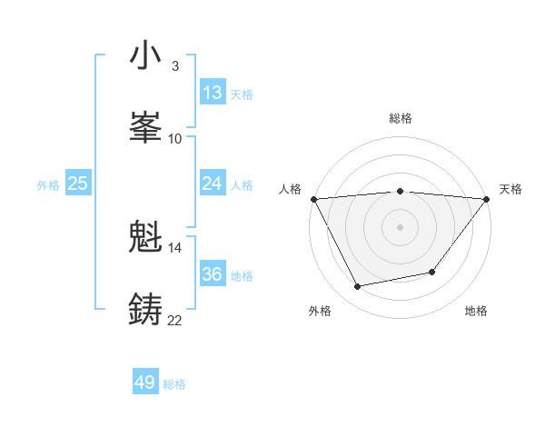 小峯 魁鋳さんの総格は49画の2点!