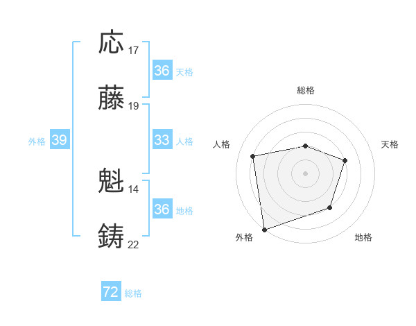応藤 魁鋳さんを姓名の画数から五運を鑑定