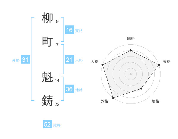柳町 魁鋳さんの外格は31画の5点!