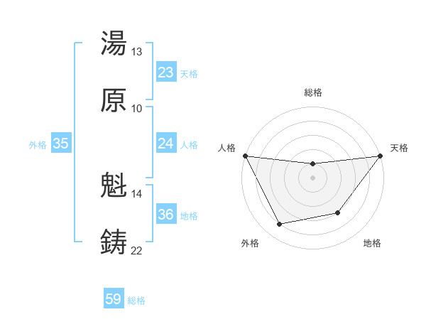 湯原 魁鋳さんを姓名の画数から五運を鑑定