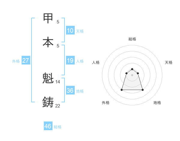 甲本 魁鋳さんを姓名の画数から五運を鑑定