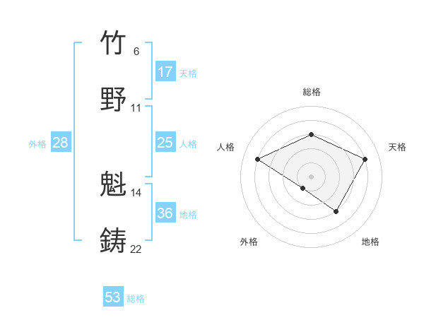 竹野 魁鋳さんを姓名の画数から五運を鑑定