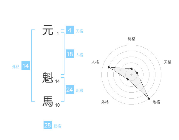 元 魁馬さんの総格は28画の1点!