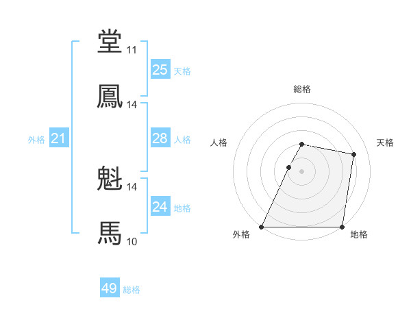 堂鳳 魁馬さんを姓名の画数から五運を鑑定