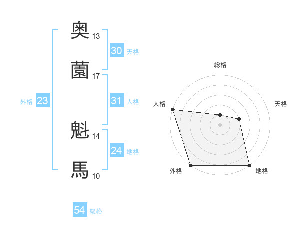 奥薗 魁馬さんの外格は23画の5点!
