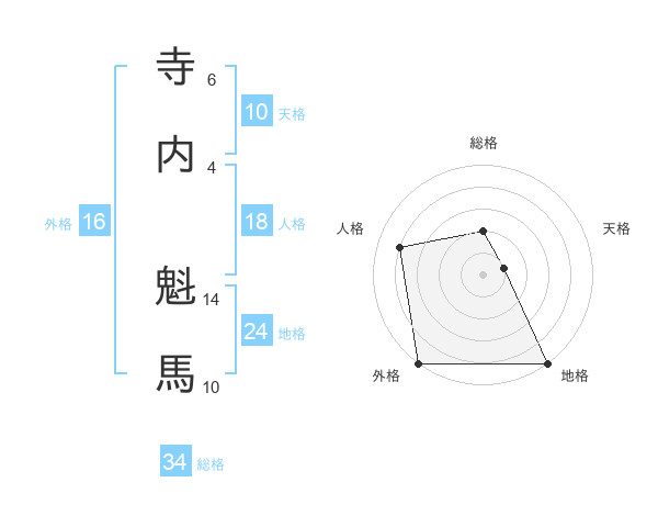 寺内 魁馬さんの総格は34画の2点!