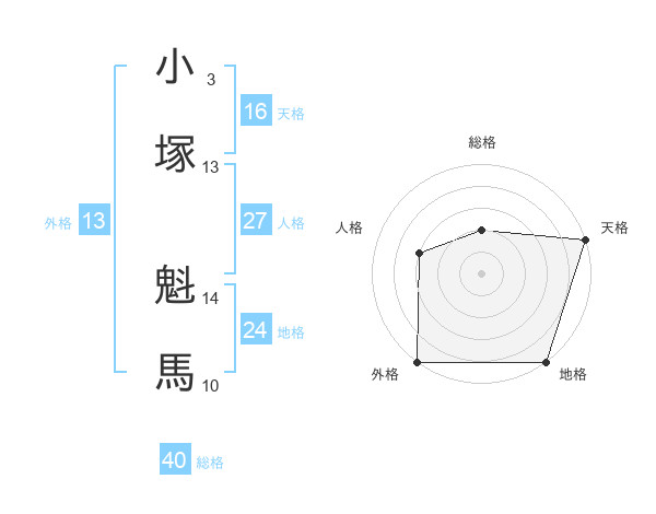 小塚 魁馬さんを姓名の画数から五運を鑑定