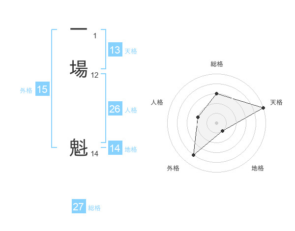 一場 魁さんの地格は14画の1点!