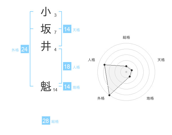 小坂井 魁さんの総格は28画の1点!