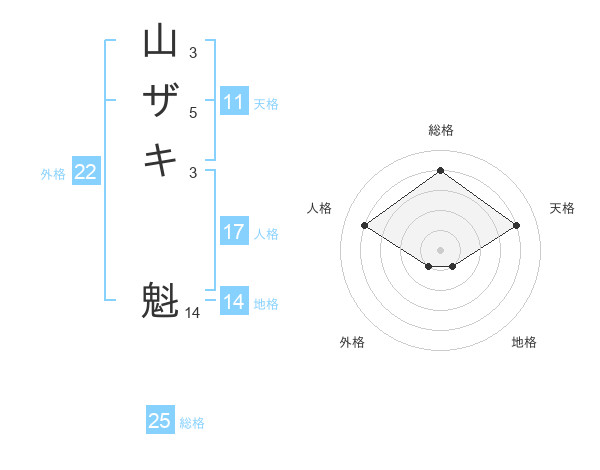山ザキ 魁さんを姓名の画数から五運を鑑定